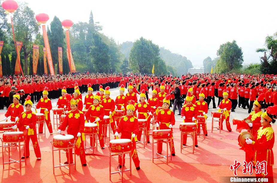 10月29日,來自湖南株洲市九個縣(市)區的1500余名廣場舞愛好者代表齊聚炎帝陵,啟動“株洲全民健身萬人廣場舞表演大賽”暨炎帝陵祭祖典禮。 張興林 黃春平攝