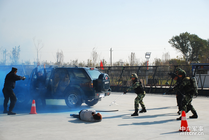 武警兵團指揮部解救“被劫持人質”演練