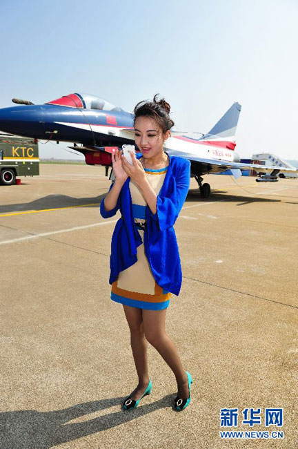 11月13日,一名女觀眾參觀殲10戰(zhàn)機(jī)后查看用手機(jī)拍攝的照片。當(dāng)日,第九屆中國(guó)國(guó)際航空航天博覽會(huì)在珠海開(kāi)幕,除了豐富多樣的飛機(jī)展示,各種職業(yè)女性也成了一道獨(dú)特的風(fēng)景線。 新華社記者楊光攝 圖片來(lái)源:新華網(wǎng)