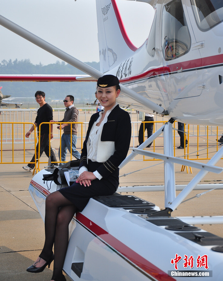每一屆珠海航展都會有許多佳麗現身,而這次航展上的直升機模特更是讓觀眾大飽眼福。中新網記者 陳海峰 攝