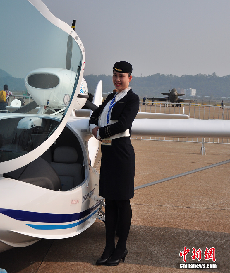 每一屆珠海航展都會有許多佳麗現身,而這次航展上的直升機模特更是讓觀眾大飽眼福。中新網記者 陳海峰 攝