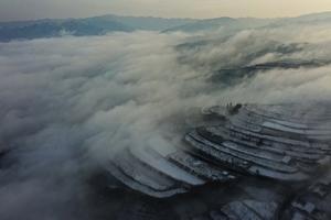 12月13日傍晚,江西武功山出現絕美流紗云瀑。薄云漂移、輕逸飄灑,猶如一層面紗蓋在鐵蹄峰上。云霧在強風的吹動下,漫過山野,俯沖谷底,倒掛成飛流直下的瀑布云。劉蕓池 攝