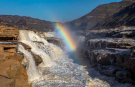 壺口瀑布現(xiàn)流凌冰掛