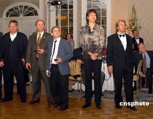 2007年新澤西冠軍之夜于當地時間10月20日在美國新澤西州希爾頓飯店舉行。大會會場放映著2008年北京奧運會的宣傳片,場外北京奧運會的宣傳畫到處可見,大會紀念冊的封面上印著北京奧運會紀念章。中國著名女排運動員、現任美國女排主教練的郎平作為大會特邀嘉賓出席了當晚的活動,中新社發 龔文謨 攝