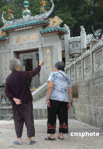 十月三十日晨,因爭管理權而關閉數日的澳門媽祖閣重新開門。目前,問題仍未解決,廟內無人管理。中新社發 史利 攝