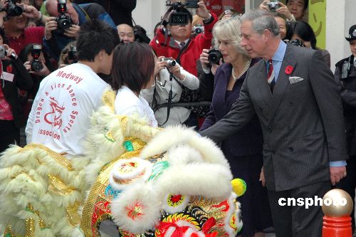 當地時間十一月一日上午,英國王儲查爾斯夫婦到倫敦華埠參觀訪問。中新社發 程嘉揚 攝