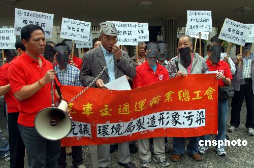 11月7日,香港20多名汽車交通運輸業總工會代表,由中環遮打花園前往政府總部,不滿當局就停車熄匙的咨詢文件,用了很多負面手法,過份渲染停車沒有熄匙所帶來的影響。中新社發 譚達明 攝