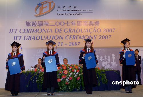 十一月七日,澳門特首何厚鏵、社會文化司司長崔世安在旅游塔主禮澳門旅游學(xué)院2007年畢業(yè)典禮。中新社發(fā) 史利 攝