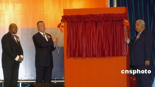 十一月九日晚,安哥拉共和國(guó)駐澳門(mén)總領(lǐng)事館開(kāi)幕典禮暨安哥拉獨(dú)立三十二周年慶祝酒會(huì)在澳門(mén)漁人碼頭舉行,澳門(mén)特首何厚鏵與安哥拉共和國(guó)外交部秘書(shū)長(zhǎng)Manuel Gomes dos Santos為安哥拉共和國(guó)駐澳門(mén)總領(lǐng)事館揭幕。 中新社發(fā) 史利 攝