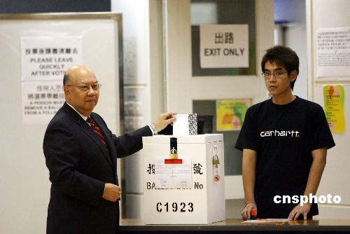 十一月十四日,香港選舉管理委員會主席彭鍵基法官巡視設于九龍公園體育館的模擬投票站。香港區議會選舉將于十一月十八日舉行,全港共設立了四個模擬投票站,讓選民預先熟習有關的投票程序。中新社發 武仲林 攝