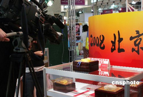 11月15日,“文筆第26屆臺北禮品展”于11月14日開幕。作為北京奧運紀念幣在臺灣獨家代理商的臺灣大洋公司,在展會上共展出十多類近百種貴金屬投資收藏紀念幣,其中多數(shù)是北京奧運金銀紀念幣和大陸歷年發(fā)行的“熊貓金幣”,還包括全球第一套以奧運主場館為主題的貴金屬收藏品北京奧運“金銀鳥巢”,自上月下旬首發(fā)以來首度在臺灣亮相。中新社發(fā) 黃少華 攝