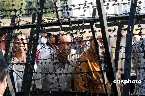 11月16日,高雄市長選舉官司在當地二審定讞。代表中國國民黨的候選人黃俊英在選舉無效和當選無效兩項訴訟中均遭判敗訴。民進黨的陳菊在去年12月9日勝出擔任市長后,今次獲承辦法官支持繼續擔任市長。今年6月15日,該官司一審曾判,選舉有效,但陳菊當選無效。圖為判決前,有陳菊的支持者在拒馬后向內張望,表達關注。中新社發 黃少華 攝