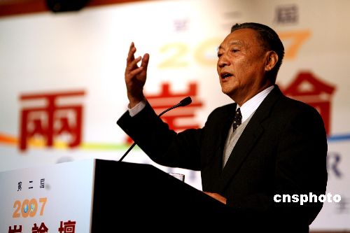 海峽兩岸關系協會前常務副會長唐樹備在第二屆“兩岸論壇”上發言。