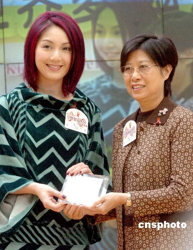 11月30日,“世界愛(ài)滋病日2007活動(dòng)開(kāi)展禮”在香港舉行開(kāi)啟儀式,行政長(zhǎng)官夫人曾鮑笑薇代表大會(huì)向藝人楊千嬅致送紀(jì)念品,以感謝她為活動(dòng)拍攝宣傳短片,推廣正視對(duì)抗愛(ài)滋病的訊息。中新社發(fā) 鄧慶樂(lè) 攝