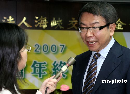 十二月二十七日,臺灣海基會在臺北舉行二00七年終記者會。圖為海基會董事長洪奇昌會后接受記者采訪。中新社發(fā) 董會峰 攝