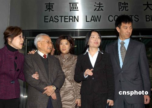 蔣麗莉(右二)在父親蔣震(左二)及家人的陪伴下,到香港東區裁判法院應訊。