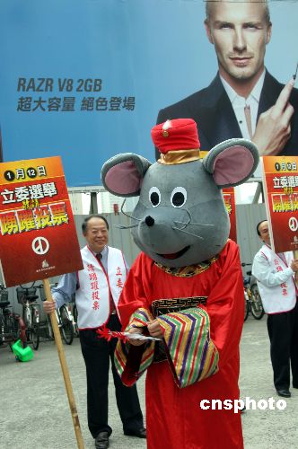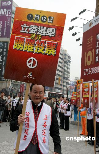 一月八日,臺北市政府民政局在臺北街頭組織宣導民眾踴躍投票活動,為即將到來的臺灣“立委”選舉造勢。中新社發 孫自法 攝