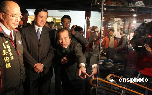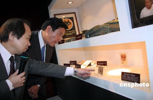圖為國民黨二00八年“大選”參選人馬英九在觀看展品。