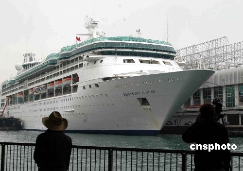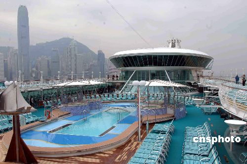 一月十五日,排水量七萬八千噸、近千間客房、可載客二千四百多人的亞洲最大郵輪“海洋迎風號”首次在香港亮相。中新社發 譚達明 攝