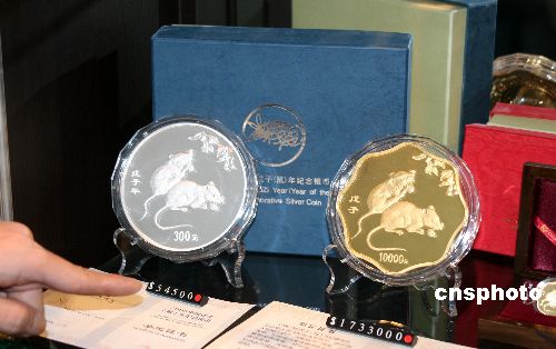 由中國臺北奧委會、臺灣大洋金銀幣有限公司主辦的“二00八年北京第二十九屆奧運會紀念金銀幣慈善拍賣會”將于一月二十七日在臺北誠品書店信義店展演廳舉行。圖為大洋金銀幣有限公司提供,將在拍賣會上拍賣,由中國人民銀行發行的二00八鼠年一公斤紀念金幣、銀幣。中新社發 陳立宇 攝
