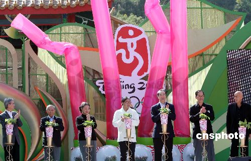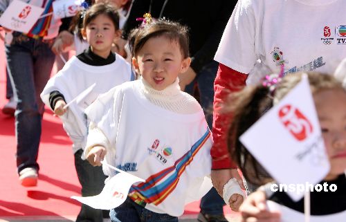 一月二十日,“齊保育·愛環保”二零零八北京奧運會二百天倒數活動在香港海洋公園舉行,以迎接即將舉行的北京奧運會及香港協辦的奧運馬術項目。中新社發 武仲林 攝
