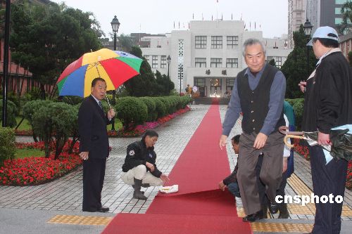 2月1日是臺灣第七屆“立法委員”辦理報到并宣誓就職的日子。清晨,臺灣“立法院”的工作人員冒雨從大門口開始鋪設通到“議場”的、長達百米的紅地毯。中新社發(fā) 耿軍 攝