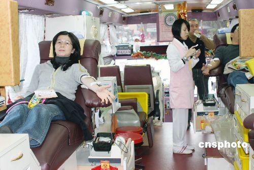 2月28日,臺灣“二二八事件”發生六十一周年,島內舉辦多項紀念活動,中國國民黨和新黨分別舉辦捐血活動,民眾積極響應捐血。圖為民眾在新黨舉辦活動的采血車上捐血情形。據悉,這是新黨自2004年以來第5度發起舉辦“228捐血紀念日”,前四年已募得2300萬CC血液。新黨成員表示,活動獲得的響應一年比一年熱烈。中新社發 黃少華 攝