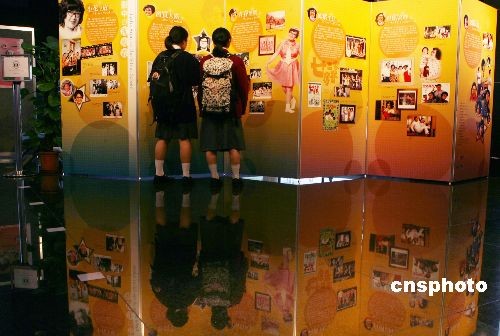 圖為兩名學(xué)生在資料館內(nèi)同期展出的圖片和劇照前駐足。