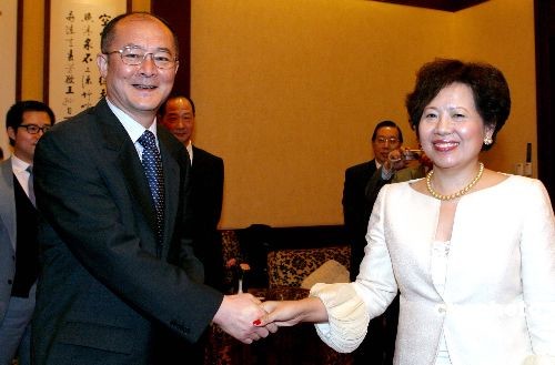 3月21日晚,國務院僑務辦公室趙陽副主任在釣魚臺國賓館宴請中國華文教育基金會香港嘉賓團一行,并在宴請之前與香港嘉賓進行了親切座談。香港嘉賓團由香港昌泰國際集團有限公司董事總經理鄧慕蓮小姐帶隊,此次專程來北京與中國華文教育基金會聯誼。團長鄧慕蓮小姐熱心公益,關注華文教育事業,于今年初向基金會捐贈五十四萬港幣。嘉賓團成員包括香港商界、法律界以及演藝界人士。圖為國務院僑務辦公室趙陽副主任與香港昌泰國際集團有限公司董事總經理鄧慕蓮小姐(右)握手交談。中新社發 張勤 攝