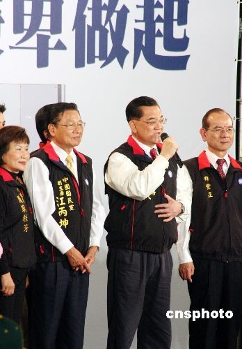 3月22日,中國國民黨候選人馬英九、蕭萬長在臺灣地區(qū)領導人大選中以221萬票的領先優(yōu)勢獲勝,大批支持者在馬蕭競選總部前集會歡慶。圖為中國國民黨榮譽主席連戰(zhàn)在集會現(xiàn)場發(fā)表演講。中新社發(fā) 黃少華 攝