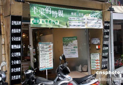 母親節(jié)期間,臺北市的商家紛紛借機做生意,圖為一家美容店推出的“豐采的母親”美容系列。中新社發(fā) 陳立宇 攝