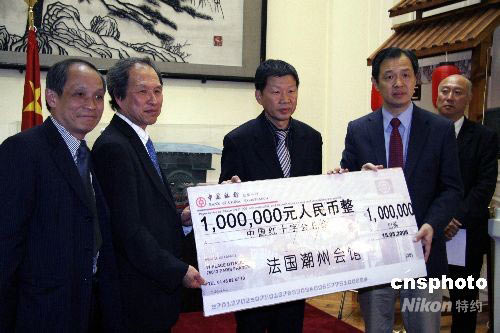 圖:旅法華僑華人踴躍向四川地震災區(qū)捐款