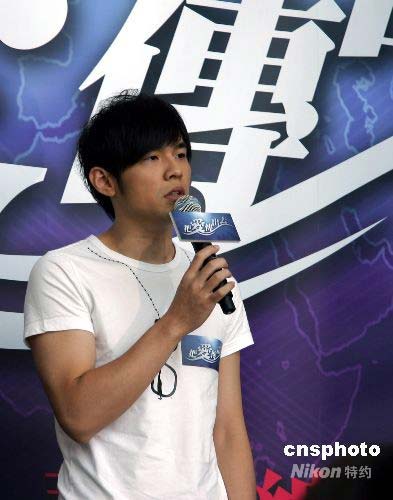 臺灣演藝界人士將于18日晚共同參與四川賑災晚會“把愛傳出去”。張小燕、張菲、吳宗憲、蔡康永等知名藝人接到邀請并積極投入晚會籌備工作,圖為周杰倫號召民眾以及更多藝人參與募款活動。中新社發 劉舒凌 攝