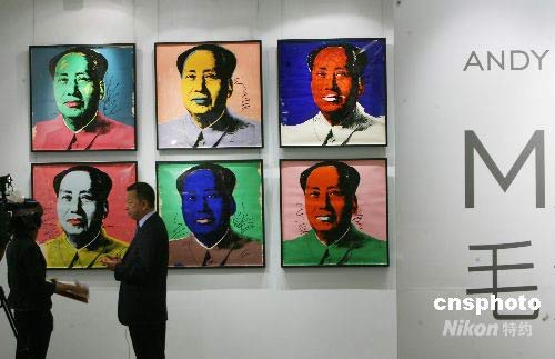 五月二十二日,香港佳士得會展中心展出著名戰后當代畫家安迪·沃荷以毛主席為題材的系列作品,這也是該系列作品在亞洲的首次展出。據悉,展出的十七幅作品總估值十五點六億港元。中新社發 武仲林 攝
