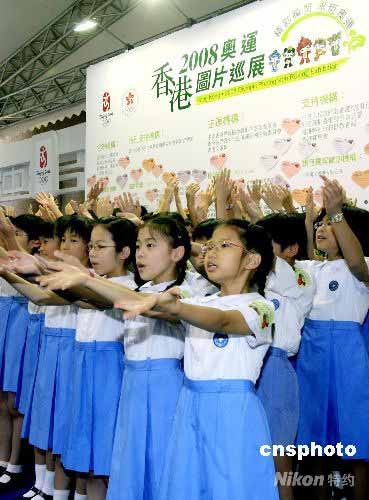 五月二十五日,“萬眾一心 眾志成城 為四川災區人民獻愛心義演”在香港時代廣場舉行,香港數所學校和幼稚園的小朋友演唱“我愛中華”、“承諾”等歌曲為四川地震災區人民加油。圖為學生演唱由劉德華專為這次地震作詞、黃家駒作曲的賑災歌“承諾”。中新社發 王麗南 攝