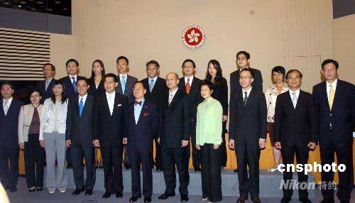 六月十日,香港特區行政長官曾蔭權、政制及內地事務局局長林瑞麟、行政長官辦公室主任陳德霖、八位新獲委任的副局長及九位政治助理下午一起會見新聞界。中新社發 譚達明 攝