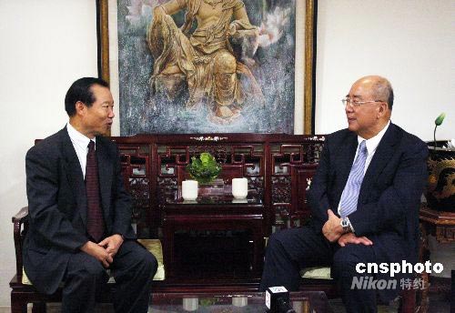7月8日,海峽兩岸關(guān)系協(xié)會副會長王在希在臺北與中國國民黨主席吳伯雄會見。吳伯雄表示,7月4日開始的兩岸周末包機以及大陸居民赴臺旅游,都很重要。希望彼此的交流有助于促進兩岸的了解和友誼。中新社發(fā) 黃少華 攝