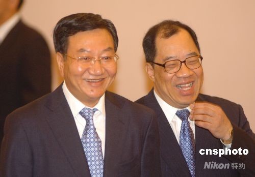 《內地與澳門關于建立更緊密經貿關系的安排》(CEPA)“補充協議五”三十日在澳門正式簽署,簽字代表商務部副部長姜增偉(左)與澳門特區經濟財政司司長譚伯源笑逐顏開。中新社發 畢永光 攝