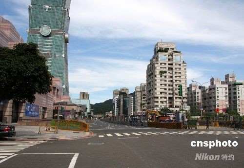 8月28日下午二時半至三時,臺北市舉行“萬安演習”,車輛行人凈空。圖為原本車輛和行人繁忙的世貿中心大街一帶道路上空無一人。中新社發 陳立宇 攝