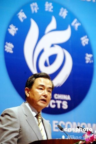 九月七日上午,中共中央臺辦、國務院臺辦主任王毅在廈門開幕的第三屆海峽西岸經濟區論壇作重要演講時,宣布為便利兩岸同胞交往,大陸方面決定采取五項新的政策措施。 中新社發 鄭祚聲 攝