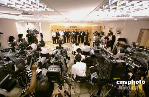 二〇〇八年香港立法會選舉已圓滿結(jié)束,民建聯(lián)在地區(qū)直選取得九席,功能界別四席,合共取得十三席,圖為民建聯(lián)當(dāng)選人九月八日上午與媒體見面。中新社發(fā) 張勤 攝