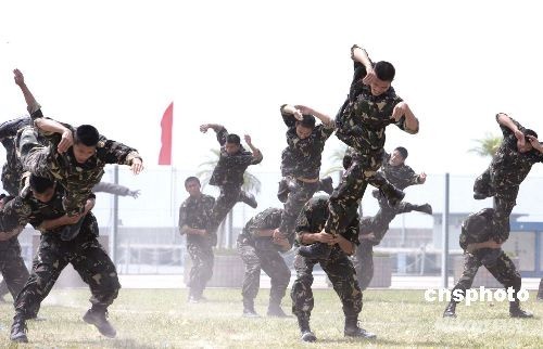 九月十五日,香港各界中秋探訪團赴駐港部隊慰問。探訪團在董趙洪娉女士和曾鮑笑薇女士的率領下,由香港工商界、演藝界人士等組成,中央駐港機構領導也參加了這一活動。駐港部隊司令員張仕波少將、政委劉良凱少將等出席活動。中新社發 張勤 攝