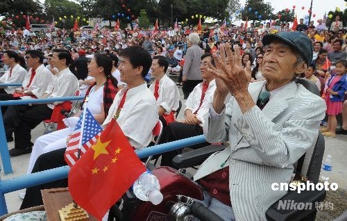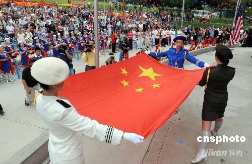 當地時間9月21日上午,數百名洛杉磯華人華僑在華人聚居的蒙特利公園市舉行隆重的升國旗儀式,慶祝中華人民共和國成立59周年。中新社發 張煒 攝