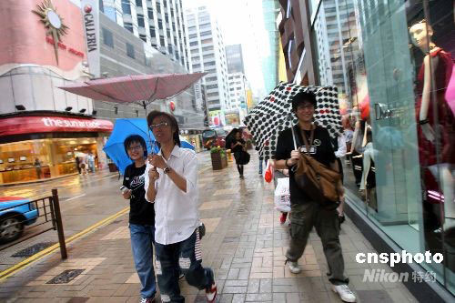 九月二十三日,香港天文臺(tái)發(fā)出三號(hào)強(qiáng)風(fēng)信號(hào),香港市區(qū)狂風(fēng)暴雨,幼兒園及智障兒童學(xué)校停課,海陸空交通受影響。中新社發(fā) 洪少葵 攝