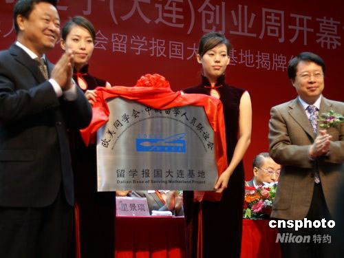 9月24日,由國家科技部、教育部、人力資源和社會(huì)保障部、國務(wù)院僑辦、中國科學(xué)院、歐美同學(xué)會(huì)·中國留學(xué)人員聯(lián)誼會(huì)和遼寧省政府聯(lián)合主辦的2008中國海外學(xué)子遼寧(大連)創(chuàng)業(yè)周在大連開幕,開幕式上還舉行了歐美同學(xué)會(huì)·中國留學(xué)人員聯(lián)誼會(huì)留學(xué)報(bào)國大連基地揭牌儀式。中新社發(fā) 宋太盛 攝