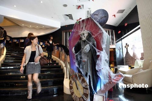 一年一度的萬圣節(jié)即將到來,在香港鬧市街頭甚至酒店商場,到處可見擺設(shè)中西文化交匯的趣怪裝飾,商家借西方節(jié)日,營造熱鬧氣氛,招徠顧客。中新社發(fā) 洪少葵 攝