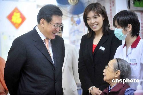 十一月三日上午,香港食物及衛(wèi)生局局長(zhǎng)周一岳,探訪一所護(hù)老中心,了解政府流行性感冒防疫注射計(jì)劃的實(shí)施情況。特區(qū)政府當(dāng)日開(kāi)始,為高危人士免費(fèi)注射流感疫苗。中新社發(fā) 譚達(dá)明 攝