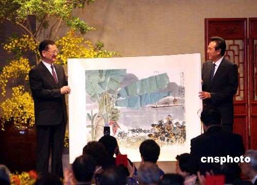 十一月四日晚,國民黨榮譽主席連戰(zhàn)、連方瑀伉儷在臺北國賓飯店設宴款待陳云林訪問團一行。中新社發(fā) 洪少葵 攝
