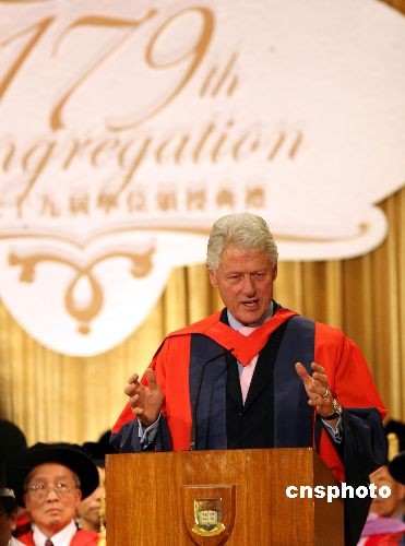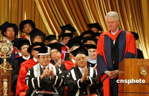 十二月四日,香港大學第一百七十九屆名譽博士學位頒授典禮隆重舉行,前美國總統克林頓獲頒名譽法學博士學位。中新社發 武仲林 攝