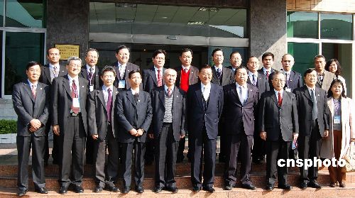 海協會與海基會聯合參訪團在廣州考察一家臺資企業后,與臺商及部分企業員工合影。